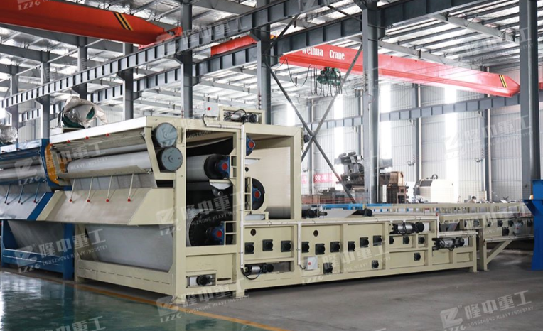 帶式壓濾機(jī)是一種固液分離設(shè)備,廣泛用于水處理和廢水處理工序中的污泥脫水。該設(shè)備是通過兩條濾帶纏繞在一系列順序排列、大小不等的輥輪上,利用濾帶間的擠壓和剪切作用,來脫除料漿中水分的一種壓濾設(shè)備,是一種進(jìn)行污泥脫水減量化處理的理想設(shè)備。